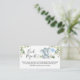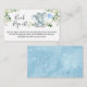 Sweet boy's watercolor elephant baby shower book request enclosure card featuring a cute elephant, a baby blue balloon and some eucalyptus foliage. Ideal for a little boy's elephant themed baby shower.
