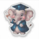 This cute sticker features a cheerful elephant proudly wearing a graduation cap and holding a diploma—perfect for commemorating academic milestones with charm and personality. Whether you're decorating a laptop, water bottle, notebook, or gift bag, this sticker adds a playful yet meaningful touch.