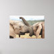 two female elephants(cows) having a quick greeting on A stretched canvas is the perfect artwork to compliment the room in your home where this will hang. It will create conversations and be a centerpiece for everyone to enjoy. This was taken near a waterhole on Addo Elephant park.