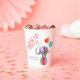 Personalise these cute baby shower party paper cups with your own honouring name. A cute useful addition to an elephant circus baby shower party. © Original elephant blowing heart-shaped bubbles watercolor art painting and design by Sarah Trett www.sarahtrett.com for www.mylittleeden.com
