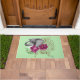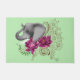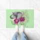 Side profile of an elephant with trunk up. Fuchsia lotus flowers and henna in a backdrop of green