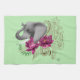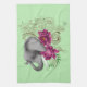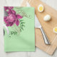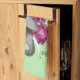 Side profile of an elephant with trunk up. Fuchsia lotus flowers and henna in a backdrop of green