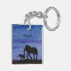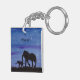 A watercolor painting of a baby and mother elephant adorns this customisable keychain!