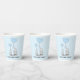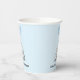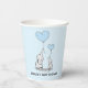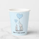 Elephant Love Blue Heart Balloons Design Paper Cups with customisable text and background colour.