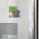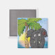 Delia the elephant on the beach at sunset standing infront of a coconut tree the perfect flair for kids or adults a fridge magnet with lots of great colour and cartoon style add to your collection today