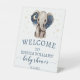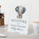 Watercolor blue gold elephant moon and stars, celestials baby boy shower sign decoration.