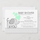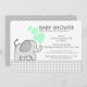 Elephant Neutral Mint and Grey Gingham Baby Shower Invitation