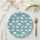 Fun and stylish paper plate featuring a playful elephant pattern in white silhouettes on a soft blue background. Perfect for birthday parties, baby showers, or outdoor gatherings. These disposable plates add a charming touch to any event and are fully customizable to suit your needs.