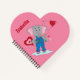 A cute pink and red heart-shaped notebook for kids featuring a cute cartoon elephant on the front and a simple heart pattern on the back . Personalise it with the child' name . Great alternative to candies on Valentine's Day .