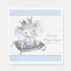 Boy elephant baby shower napkins with adorable baby prince elephant on a blue polka dot background. These cute elephant baby shower paper napkins are easily customised with your text.