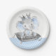 Boy elephant baby shower paper plates with cute baby boy elephant prince on a baby blue and grey polka dot background. You can add text to personalise these sweet boy elephant baby shower paper plates. You can also add a background colour to these elephant prince baby shower plates.