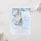 Boy elephant baby shower invitation with cute baby elephant with prince crown and trunk on a blue watercolor background. This cute elephant baby shower invitation is easily customised with your event details in the font style you prefer.