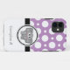 Cute and classy iPhone 5 Case designed in a purple and white assorted polka dots pattern, with an adorable little grey elephant, and custom printed with your name or personalised text.