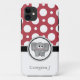 Cute and classy iPhone 5 Case designed in a red and white assorted polka dots pattern, with an adorable little grey elephant, and custom printed with your name or personalised text.