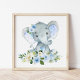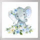 Elephant, Safari, Blue Flowers, Boy Nursery Poster