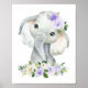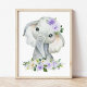 Elephant, Safari, Purple Flowers, Gender Neutral Poster