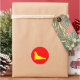 A yellow elephant seal on a red background printed just for you on a fine sticker on your choice of any of several size and style options.