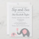Invite your guests to your elephant themed Sip and See with our adorable, pink and grey elephant invitations. The elephant is holding a festive balloon over a subtle chevron background.