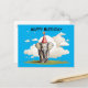 This is an AI generated design. I wanted an elephant wearing a birthday hat in a grassland and that is what I got. I thought a light blue background for the elephant looked good. On the back I put the text Delivered from:, Send to: