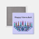 Brighten up the eight nights of Chanukah with this colourful menorah magnet! Graphic illustration of an elephants, giraffe, and Star of David menorah design.