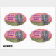 Animal Parade Elephant Oval Stickers are for the fun side of you featuring our original art of a cute cute elephant character standing in the green grass of the Savannah with a pink sky and a wavy purple border painted by our talented children's artist, Traci Van Wagoner. On many of our whimsical animal products, you’ll see the fun pachyderm coming and going with this fun artwork of the whimsical elephant’s head on the front and the safari elephant’s tail on the back. Join the Animal Parade and buy an entire set of matching customisable Animal Parade Elephant home and office accessories today. Perfect for elephant lovers of all ages.