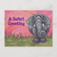Animal Parade Elephant Postcard are for the fun side of you featuring our original art of a cute cute elephant character standing in the green grass of the Savannah with a pink sky and a wavy purple border painted by our talented children's artist, Traci Van Wagoner. On many of our whimsical animal products, you’ll see the fun pachyderm coming and going with this fun artwork of the whimsical elephant’s head on the front and the safari elephant’s tail on the back. Join the Animal Parade and buy an entire set of matching customisable Animal Parade Elephant home and office accessories today. Perfect for elephant lovers of all ages.