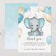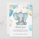 Elephant Turquiose Balloons Baby Shower Thank You Card