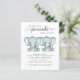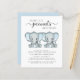 A cute and budget-friendly twin baby boys drive by shower invitation with "Two Sweet Little Peanuts Are On Their Way" written in soft grey modern typography and a stylish script, and two pastel blue watercolors of baby elephants. Personalise with the mother-to-be's name and the drive by shower details in simple grey typography.