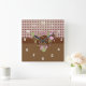 Elephant with Pink & Brown Plaid Background Square Wall Clock