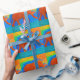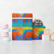 Bright Orange elephant marches across the paper with bright colours surrounding him
