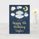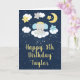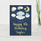 This cute and whimsical birthday card can be personalised with a name or title, such as daughter, granddaughter, niece, friend etc. It features an adorable baby elephant in a gold crown sitting on a cloud with falling stars. In the background is a starry night sky and crescent moon. The text combines handwritten script and sans serif fonts for a stylish and modern look.
