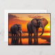 Elephants at sunrise, beautiful colours, AI generated digital art.
