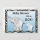 Cute modern and trendy baby boy Baby Shower invitation. With an adorable printed image of a baby elephant holding tail with his mom on a blue background with a pretty border of a black and white zebra print. The wording on the front of this invite is a printed image and can not be customized but the event details on the reverse are fully customizable to meet your requirements. If you would like help to customize your product, or would like matching products please contact me through my store and i will be very happy to help you.
