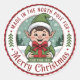 Celebrate the magic of the season with this Elf-Crafted Holiday Badge sticker. Designed as a round badge, it features a cheerful elf holding a gift against a snowy background, framed by a stitched border for a handmade look. The playful text reads: “Made in the North Pole For [Name] • Merry Christmas.” Perfect for sealing envelopes, decorating packages, scrapbooking, or adding a whimsical touch to classroom activities. Personalize with any name to make your holiday packaging feel truly enchanted and one-of-a-kind.