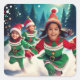 Elf Kids Running in the Snow Square Sticker