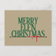 Spread some holiday cheer with the Elf Shenanigans Greeting Sign Christmas Postcard! This whimsical design features an adorably floppy little elf doll, utterly worn out from its playful escapades, sprawled out with one leg and arm dangling off a chic wrought iron bar. With a cheeky "Merry Elf'n Christmas" emblazoned in a hunter green condensed serif font, this card is bound to bring smiles and laughter. Set against a kraft paper tan background, it’s the perfect blend of humour and festive cheer!