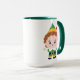 Start your day with a cheerful wave from this adorable Buddy the Elf Cartoon Mug! This mug features a cute, simplified graphic of Buddy in his iconic elf suit, ready to bring a smile to your face. With its simple design and a classic white exterior contrasted by a dark green handle and interior, this mug is a perfect, subtle piece of Elf Movie Merchandise. It's ideal for coffee, hot cocoa, or any festive drink. It makes a wonderful, unique Christmas gift for friends, coworkers, or anyone who believes in the spirit of the season!