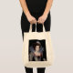 The printing came out very well, better than I had anticipated. The natural color fabric is sturdy with strong seams and comfortable handles. This tote fits easily over my shoulder. As it is filled, the bottom flattens out--very cool! I would buy this product again. This grocery tote holds a lot of groceries! The image quality was very good. The colors were a little darker than I had expected. The darkness may have been due to printing on a natural color fabric rather than on white. The cat design is attractively centered on the tote. The spirit of the design is very lively, just as it appears on the Zazzle website.