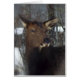 A female elk walks along the river bank searching for food during winter.