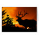 An elk stands on a hilltop as a wildfire rages behind him. His silhouette stands out sharply against the fire in the background. Computer art by Kathie Miller.