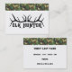 Top border in a green camouflage. Antlers and "Elk Hunter" below. Back has customisable text.