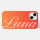 Repeating faded yellow color text handwriting Luna name pattern behind the large light greyish white name over light red to orange gradient color