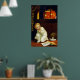 Decorate your wall with a beautiful vintage Halloween poster featuring a frightened boy with a scary book at night, painted by the American illustrator/commercial artist Ellen Hattie Clapsaddle.