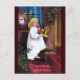 A beautiful vintage Christmas postcard featuring Santa Claus looking through the window at a little girl, painted by the American illustrator/commercial artist Ellen Hattie Clapsaddle.