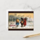 A beautiful vintage Christmas card featuring three children looking up to Santas sleigh, painted by the American illustrator/commercial artist Ellen Hattie Clapsaddle.
