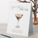 This signature drink menu sign features a modern calligraphy script heading and minimalist design. The script text heading is an image that cannot be edited. The heading image can be resized to fit any poster size. All of the other text is fully editable. The front and back can be edited to show different drinks. The template includes over 100 drink options. To change the drink image select the "Customise It" button and click on the eye icon on the drink layers on the left side of the screen.