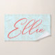 Handwritten Ellie repeating name of Double Spanish White color over frosted mint background color topped with large Ellie name of sunset orange color