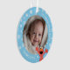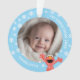 Celebrate the most wonderful time of the year and your baby's first holiday with this joyful Elmo Baby's 1st Christmas Photo Ornament! This sweet, memorable ornament is the perfect way to commemorate this special milestone, featuring the enthusiastic and lovable Elmo from Sesame Street. The design includes a custom space for your favorite baby photo surrounded by a festive blue border decorated with snowflakes. It prominently features a cheering Elmo, along with the personalized text "1st CHRISTMAS 20XX" and the baby's name. This colorful keepsake will be a cherished reminder of their first holiday season for years to come!
