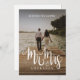 The new Mr and Mrs! Congratulations on your romantic marriage adventure. Share the elopement news with your family and friends with this personalised "we eloped" announcement and post-wedding celebration. The white "Mr & Mrs" is digitally handwritten in a calligraphy modern calligraphy style and features an elegant ampersand (&). Add your new last name to the cover of the page (remember to space out the letters for an extra layer of elegance) and share your favourite picture from the wedding day. Customise the back with a messaging of your own. If you are not doing any post-wedding celebrations, remove the text by adding a space to the personalised text fields or remove it altogether when you customise the card to your liking!