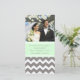 Elopement announcement Photo Card in fun and modern pastel light mint green, grey and white chevron retro zigzags pattern, customisable with your names and wedding date, the perfect way to announce that you have eloped to friends and family. Pattern available in a wide range of matching wedding products.